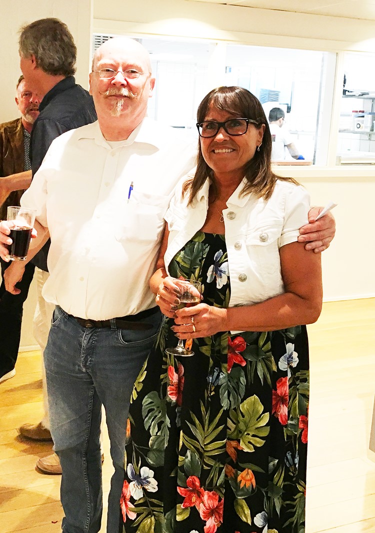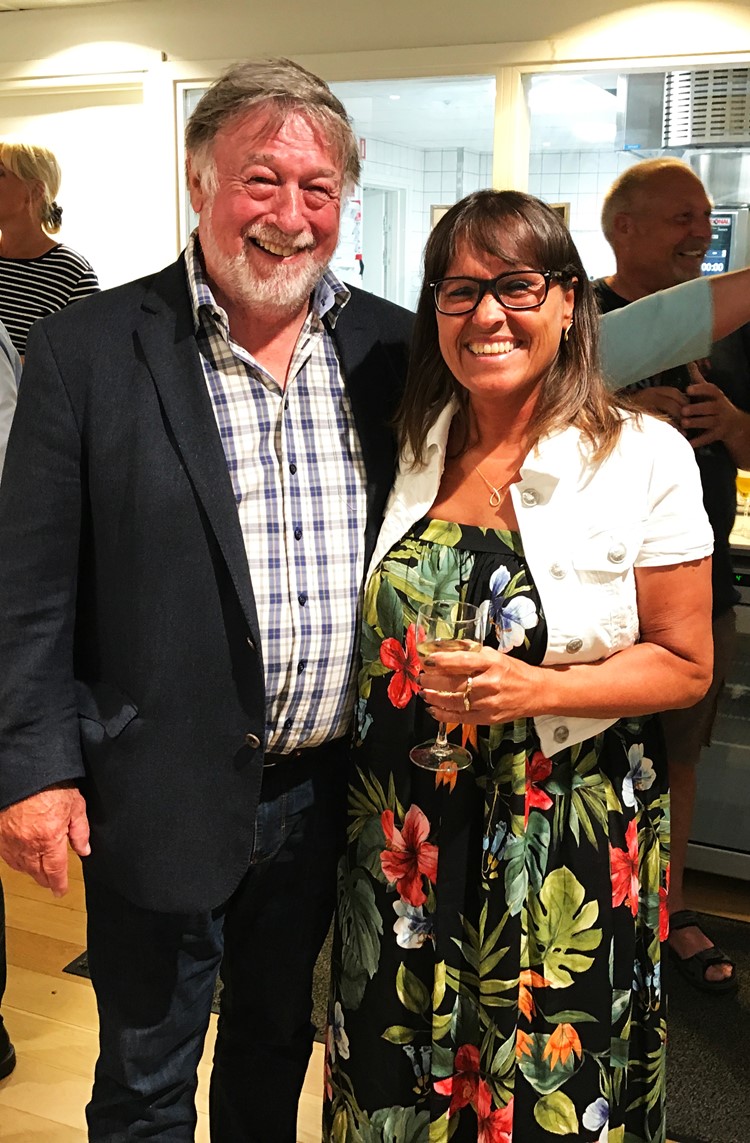 Lone Holm Brask blev begavet med både blomster, vin og søde taler fra sin chef Steffen Boel Jørgensen og Bo-Vitas organisationsformand Jan Hyttel, der var med til festen.